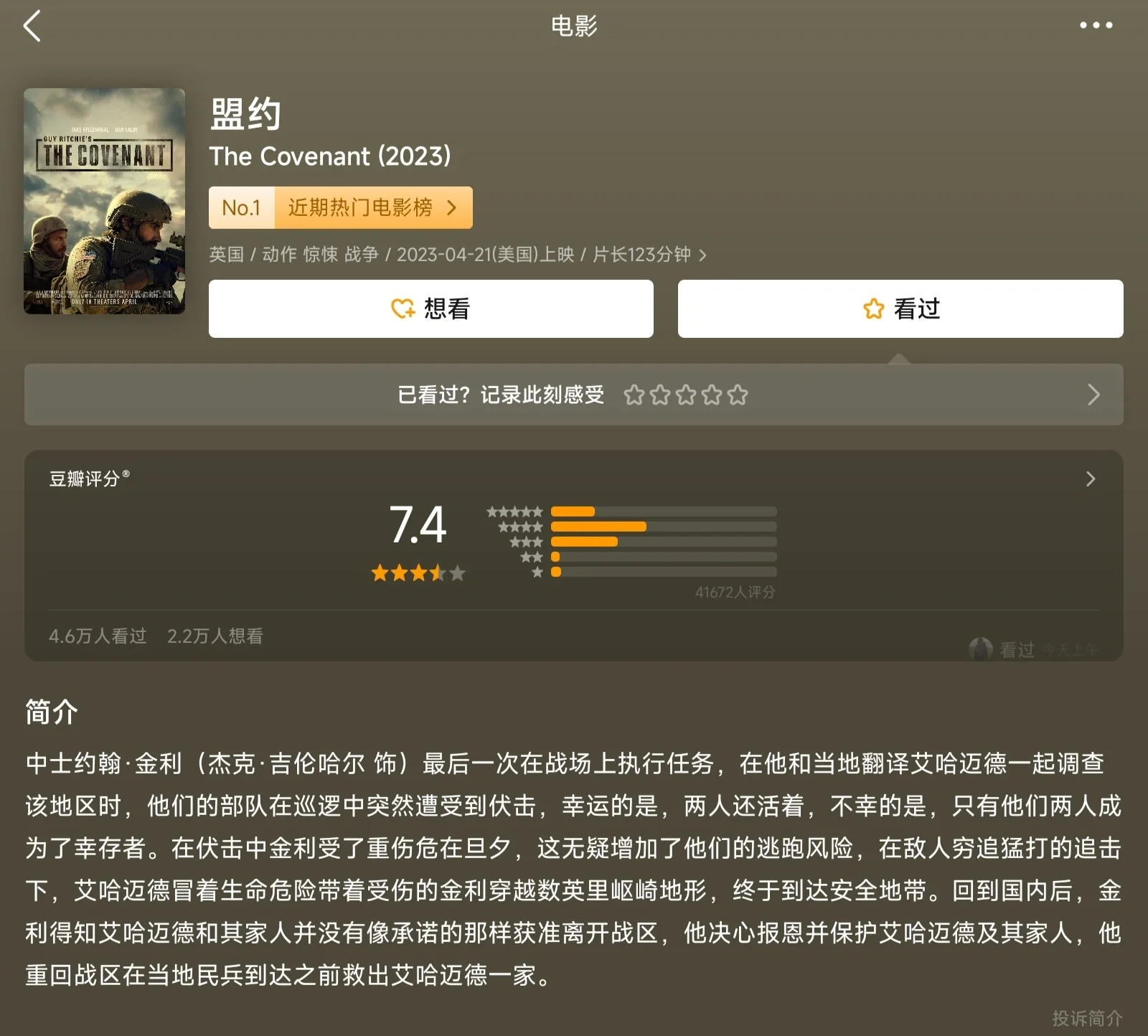 真实事件改编,美国出兵阿富汗期间军土长约翰与当地传译员艾哈在行动期间遭到伏击,艾哈因为救他受到塔利班威胁约翰遵守盟约营救艾哈。