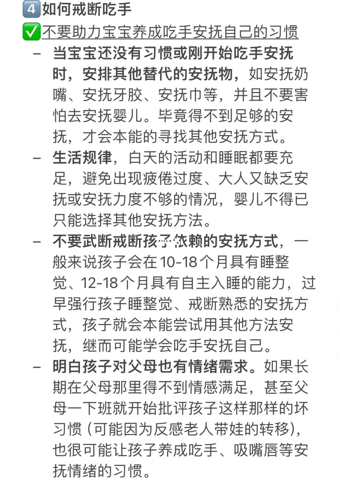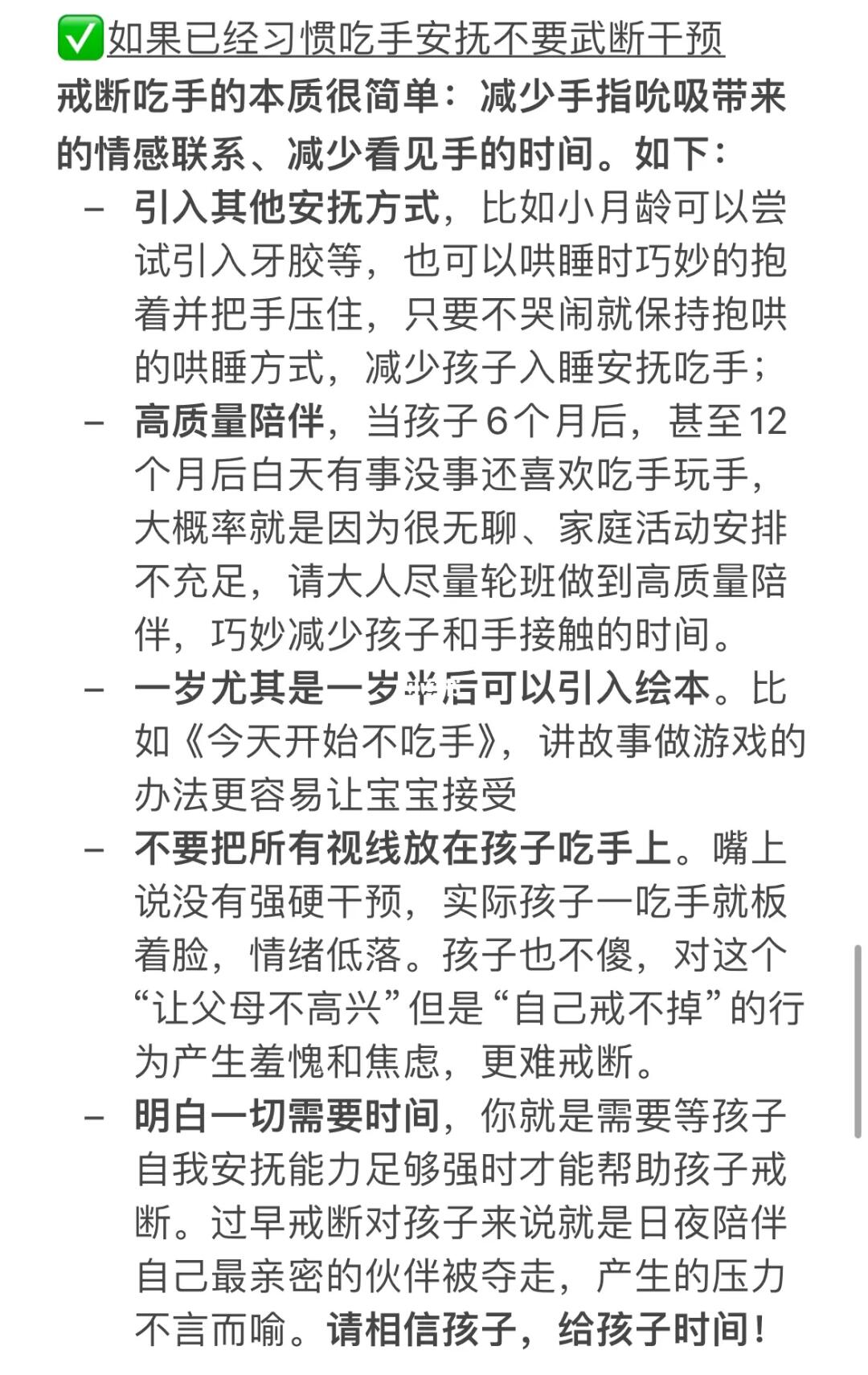 对于已经养成吃手安抚时如何戒断呢,这就不是一天两天可以解决的问题了,具体内容请看kk这篇文章吧,授之以渔一定对你有帮助。
