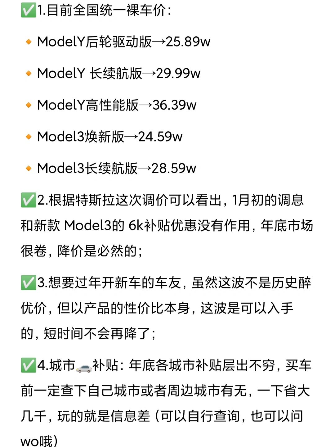 ✅2.根据特斯拉这次调价可以看出,1月初的调息和新款 Model3的 6k补贴优惠没有作用,年底市场很卷,降价是必然的;
