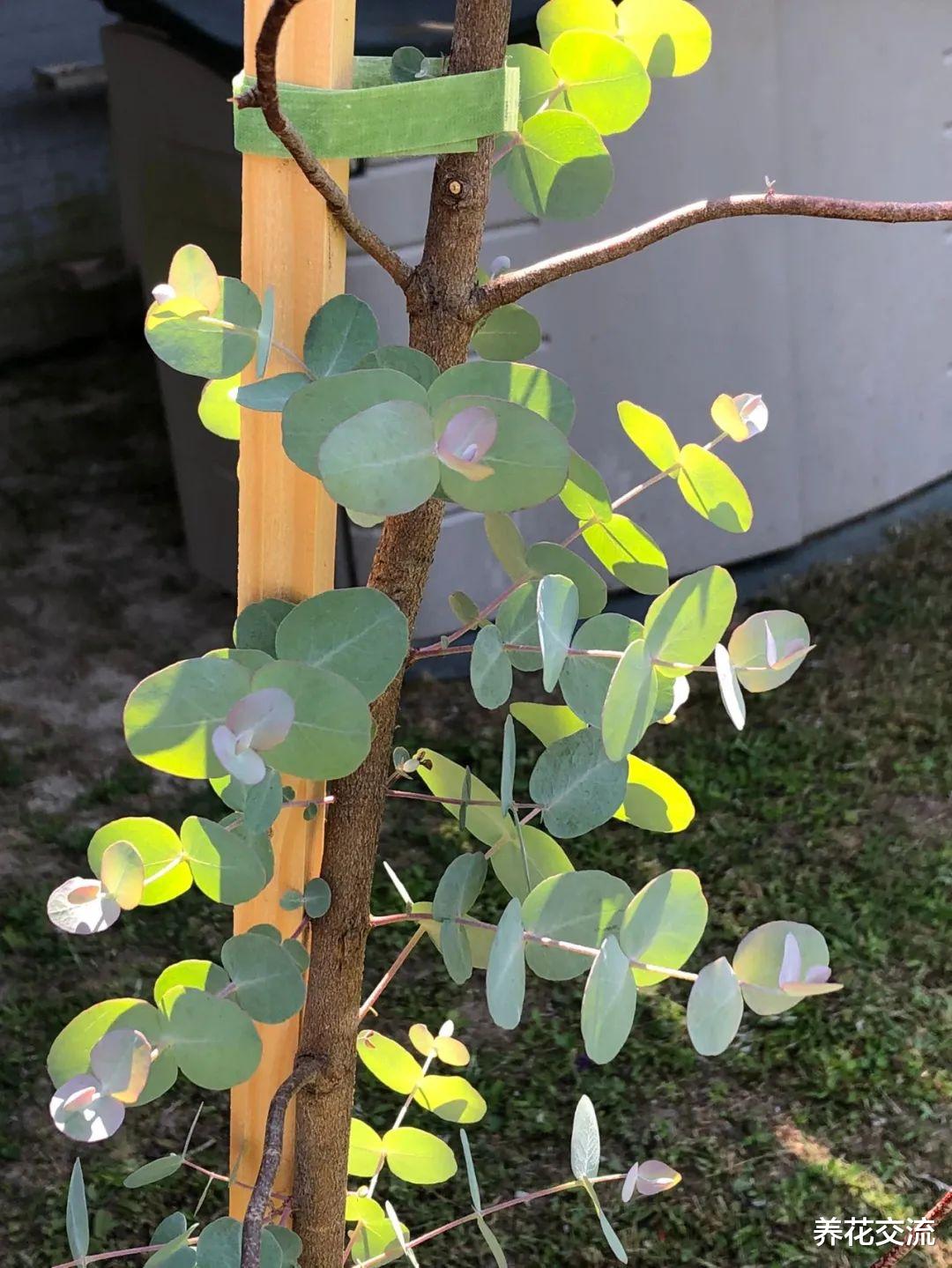 尤加利就是桉树,它有很多园艺观赏品种,比如常见的银元桉树、少花雪桉和苹果桉等,它的观赏性是非常好的,叶子形态各异,有狭长的叶子,有圆圆的叶子,叶子是呈银白色的,看起来特别清新,特别适合作为鲜切花,用来包扎花束。