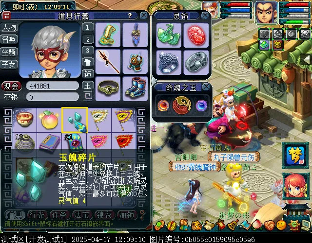 此外,若玩家持续在线,还会获得玉魄碎片,可以在女娲神使处兑换新出的一些道具。