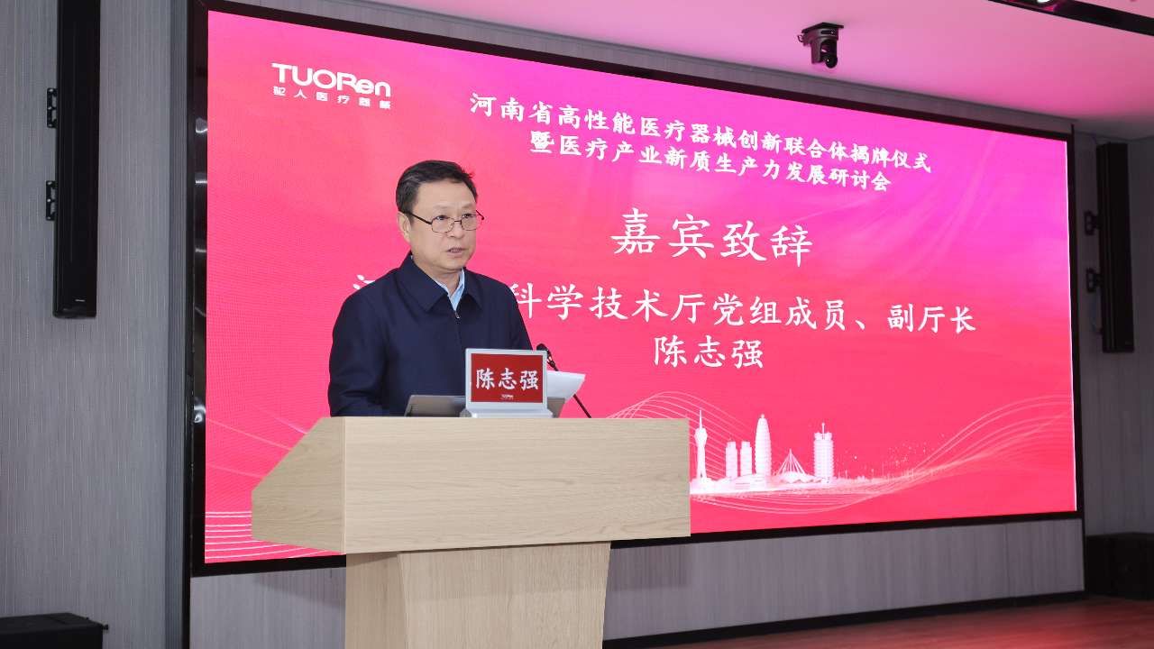 河南省科学技术厅党组成员、副厅长陈志强,郑州经开区党工委书记李小虎,郑州大学第二附属医院学术副院长葛波勇,驼人集团创始人、总裁王国胜出席活动并为创新联合体揭牌。