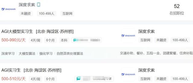 此外,除正式员工外,DeepSeek同时在招聘实习生,薪资范围也很可观。
