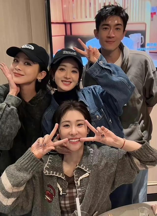 明星合照星光大赏活动后赵丽颖、张碧晨、林更新、王伊瑶聚会了,还晒了合照。赵丽颖亲吻张碧晨,看得出来关系很好了。