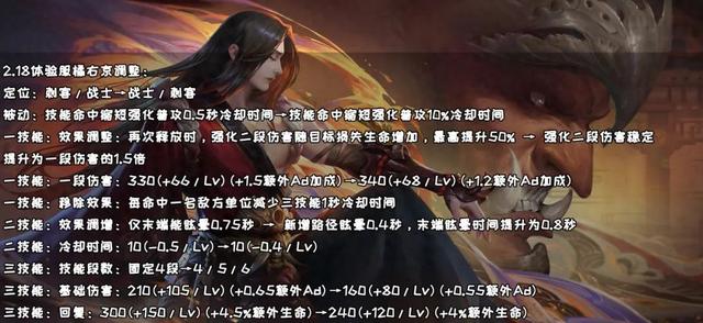 比如调整前,强化2段命中满血敌人,所造成的伤害和1段无异,无法享受加成;调整后无论对方有多少血,都能有50%的伤害加成。PS:橘右京全期输出都会提高,更往“爆发战士”定位靠拢。不过,也因此削弱了Ad加成,平衡中后期伤害,以免过于离谱。