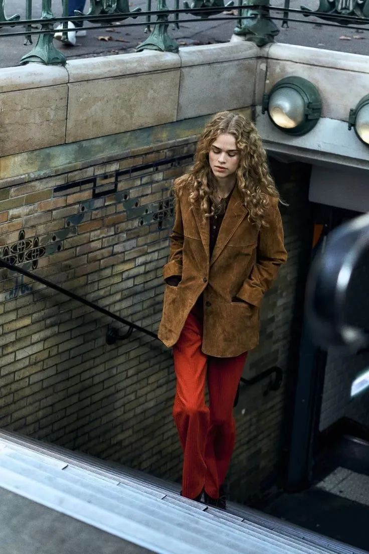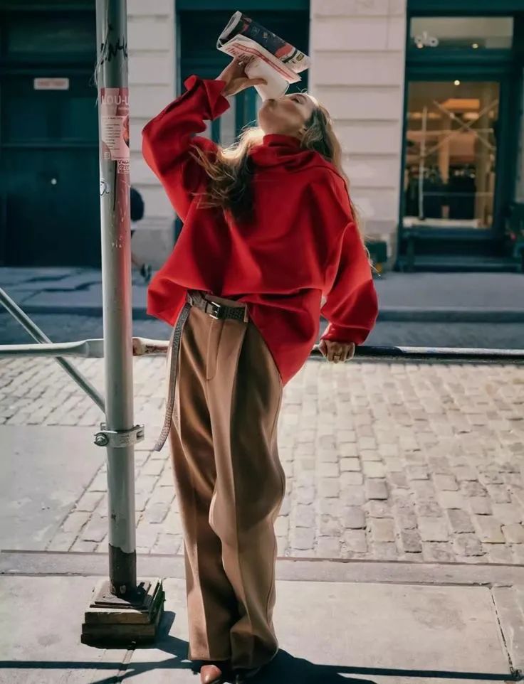 红色毛衣与摩卡慕斯长裤,棕色西装与红色长裤。这对组合,绝对是冬季里最热烈、最抢眼的色彩混搭!