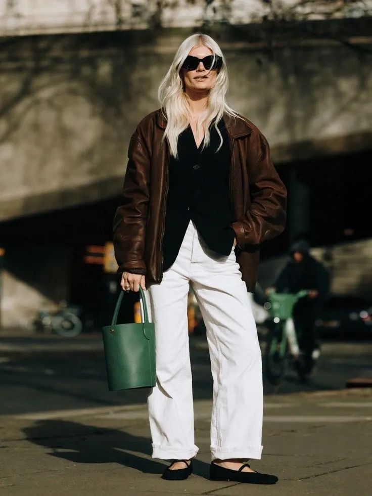 本期就来分享一些摩卡慕斯色的穿搭,选择一件夹克搭配白色阔腿裤,再配一双同色调运动鞋,清爽又和谐。