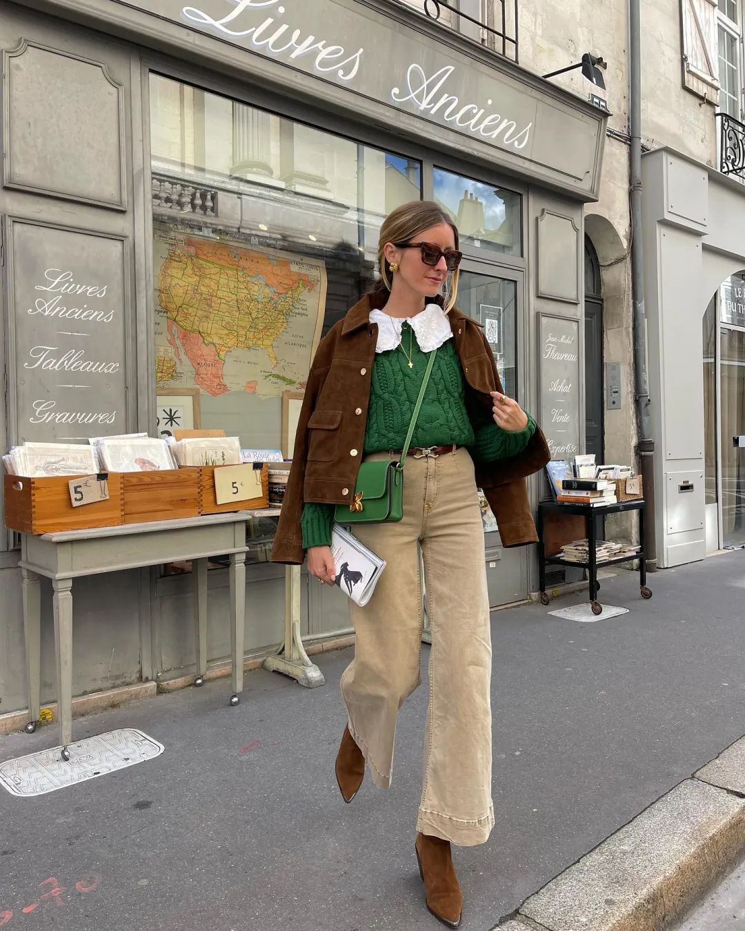 和绿色搭配在一起,仿佛让整个搭配都变得活泼起来,只要有一点绿就能点亮整个Look。