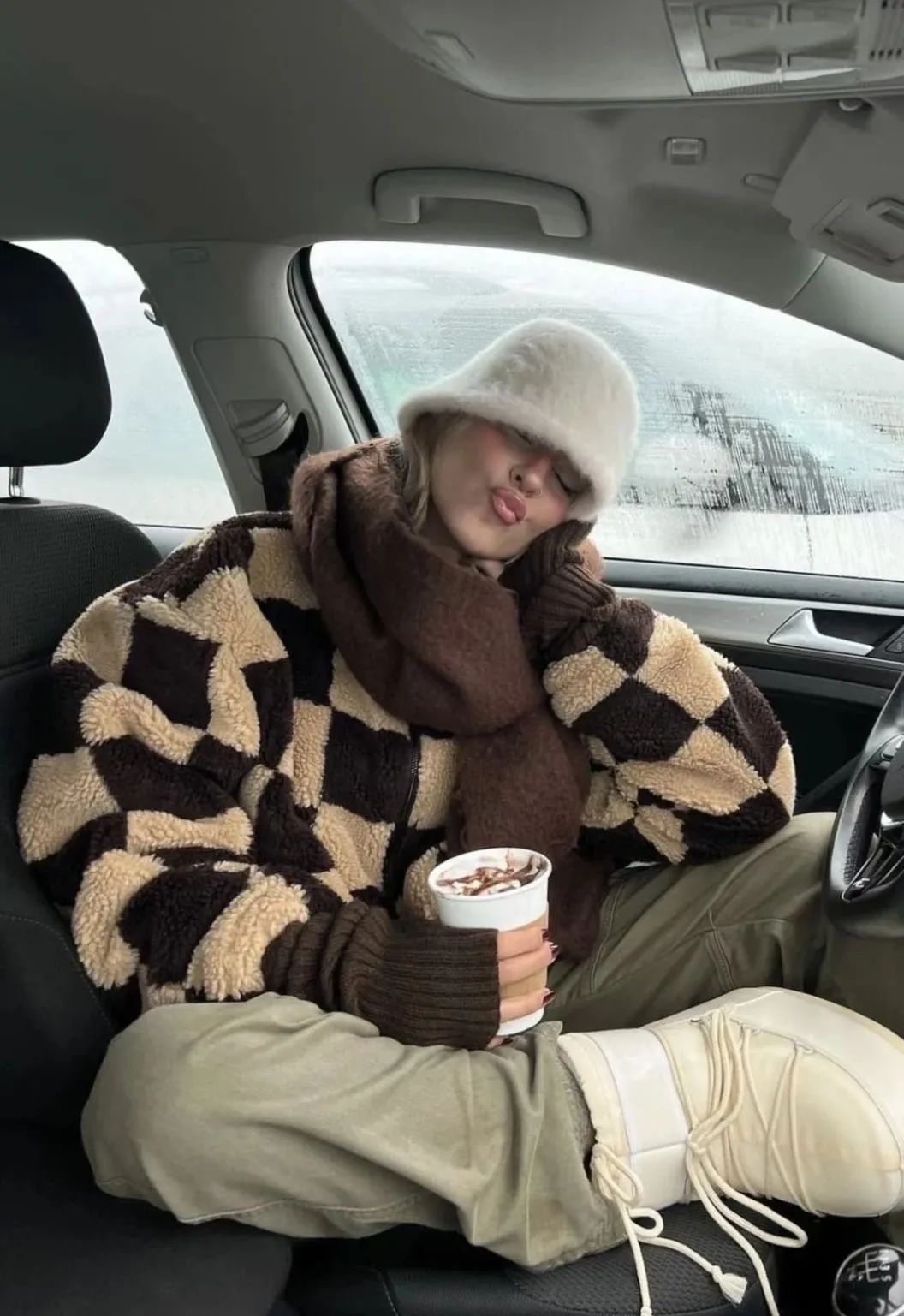 同色系搭配更容易穿出高级感,可以选择深浅不同的棕色单品来搭配,让浅色调更接近面部肌肤,更衬肤色。
