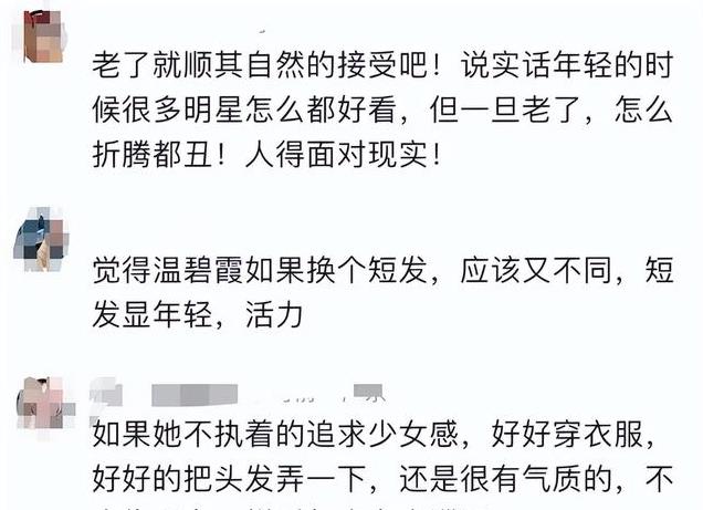 不怕人苍老就怕人强行扮嫩,其实大家也不是要嘲讽温碧霞有多丑,主要是温碧霞现在的强行扮演少女,不仅让观众觉得不适应,也把她自己给折腾得不轻。