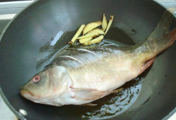 第三个:不要先着急放油,等锅烧热后再放油,把锅润一下后倒出油,放新的冷油,下鱼开始煎。这一招叫做热锅凉油,不管煎什么鱼,用这招后都不会粘锅和破皮的。