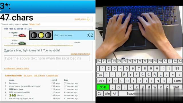 一旦你习惯了正确的打字位置,你就可以在一些应用程序或网站上练习打字,比如风靡了20年的金山打字通;练习英文打字的话则可以试试TypeRacer,可以在线与其他人比赛,竞争是学习的强大的动力。
