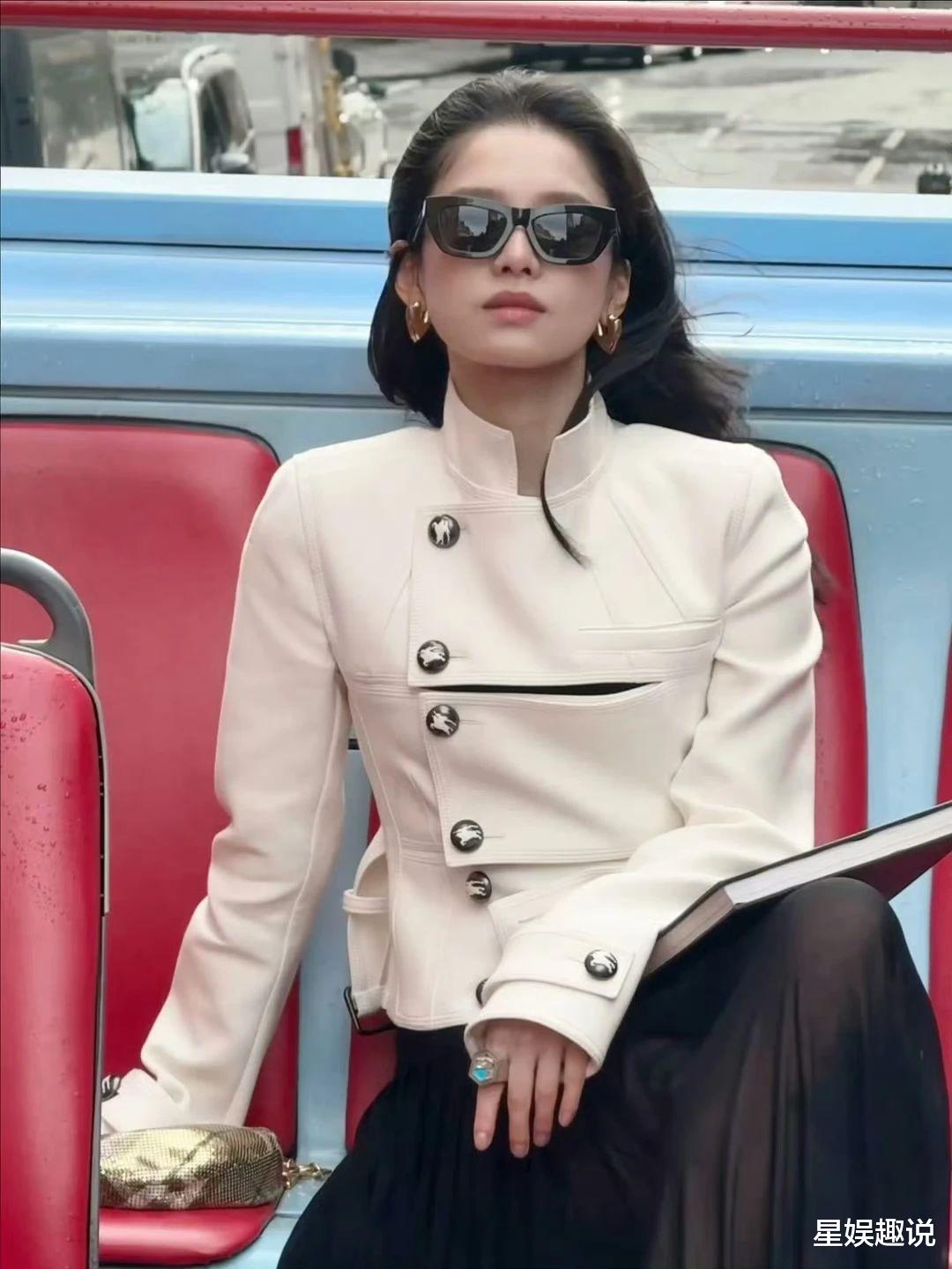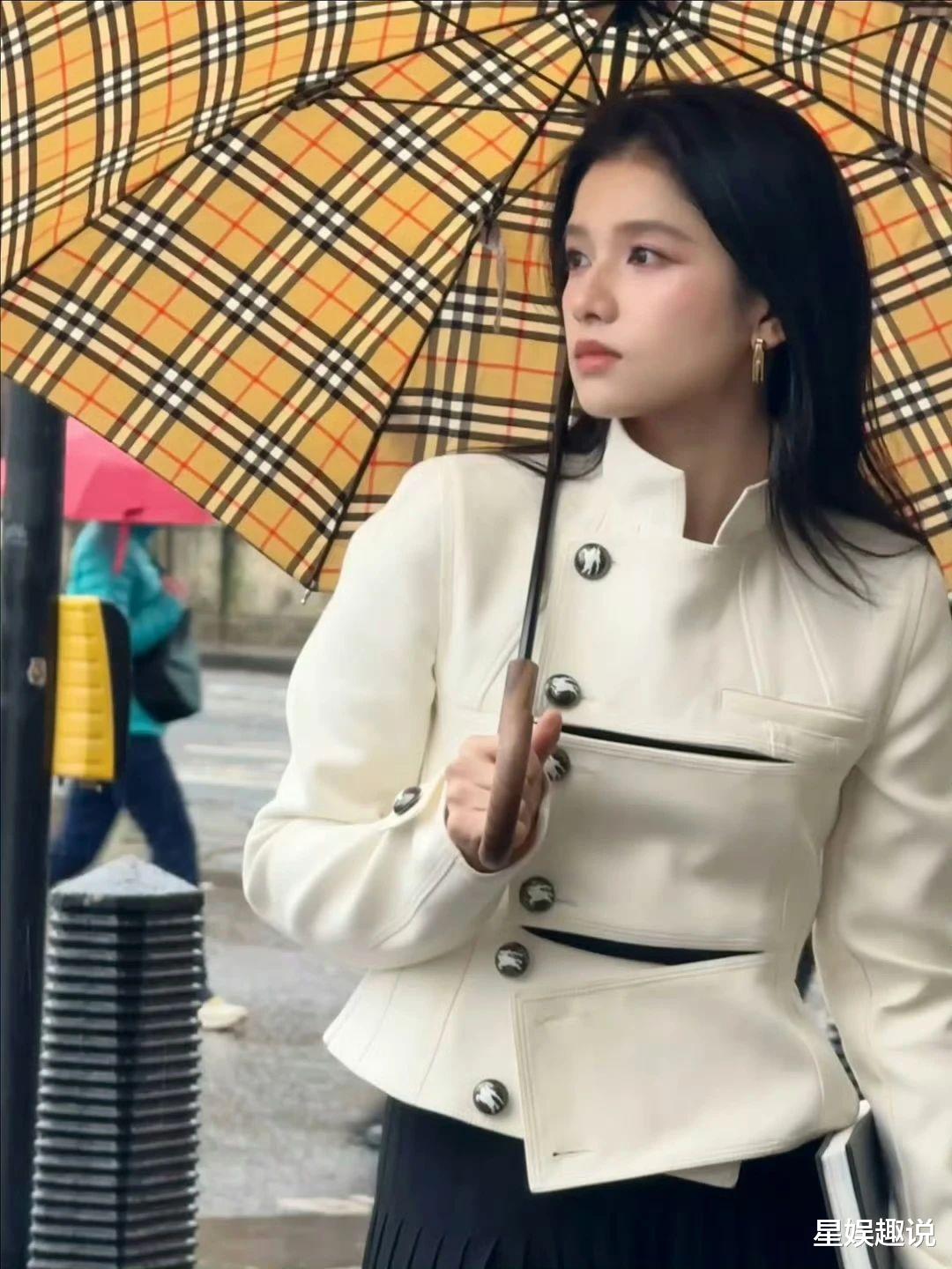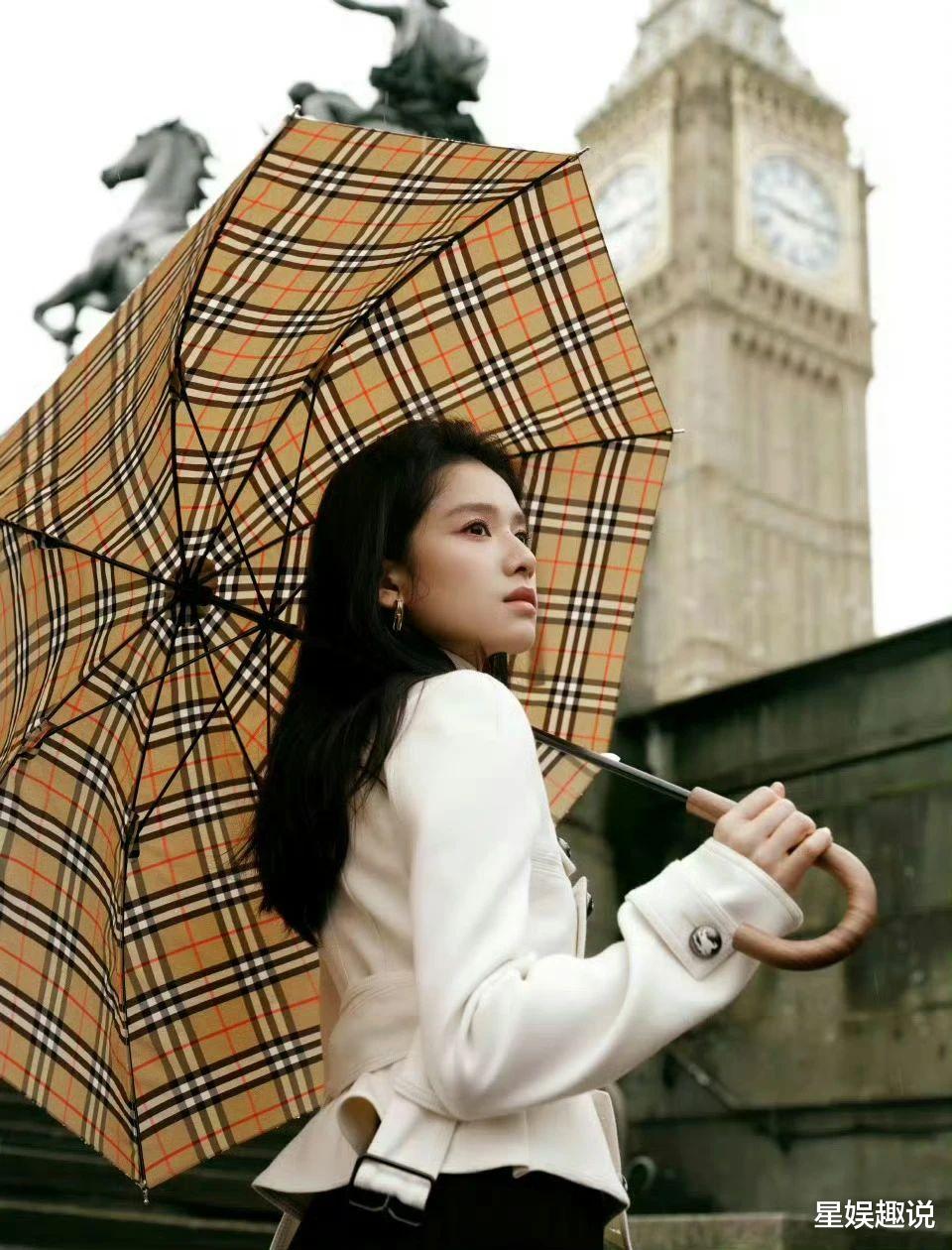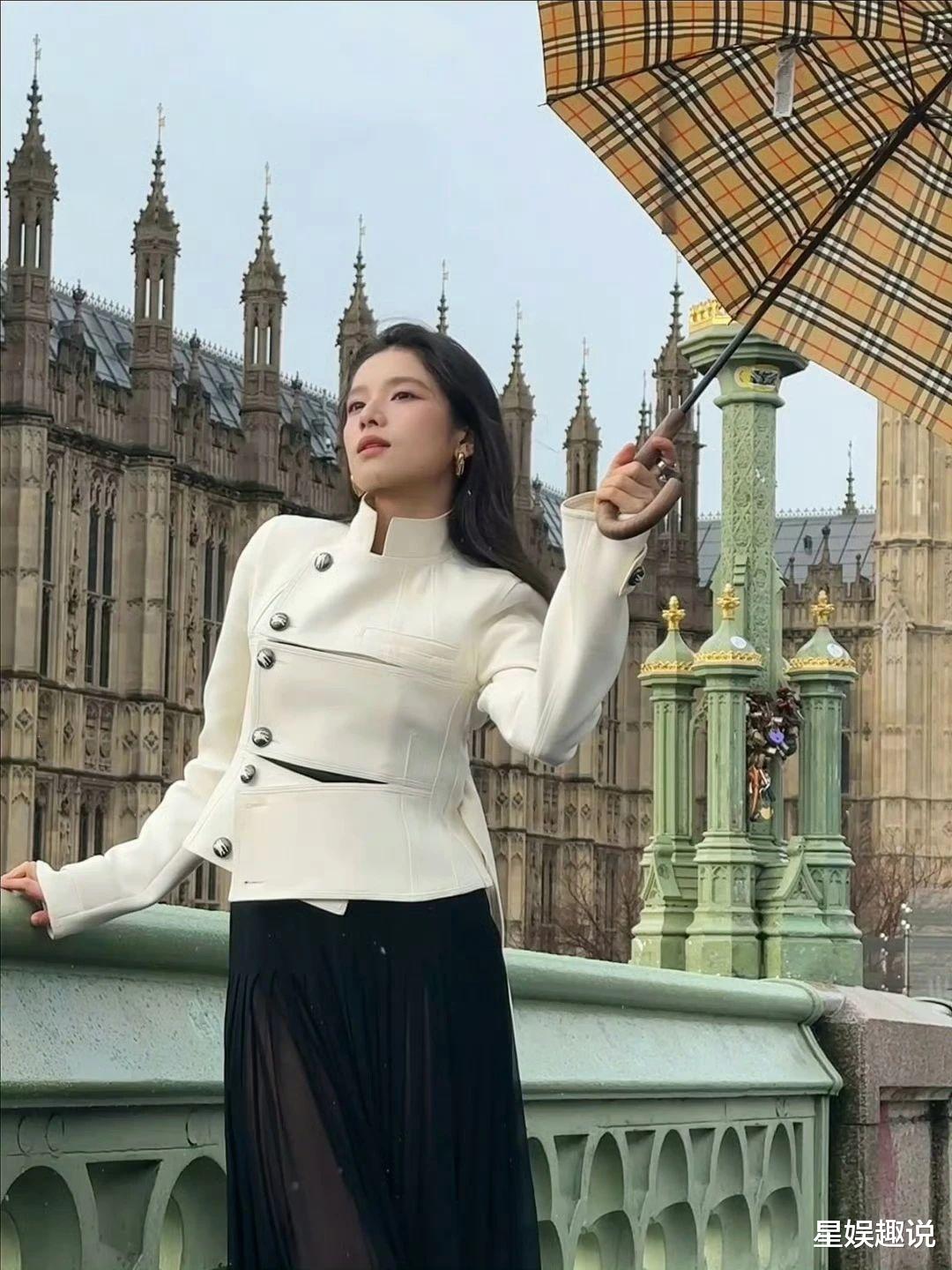 张婧仪一组英伦风美照曝光。她以白色短上衣搭配黑色半裙,配饰精致,手持格纹伞,于大本钟等标志性建筑前或坐或立,眼神沉静,尽显优雅气质与独特魅力。