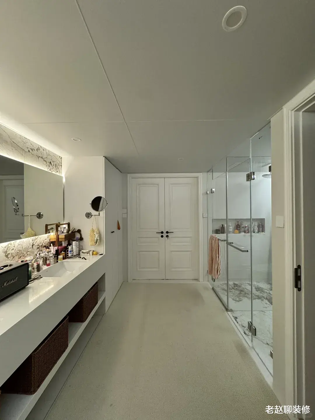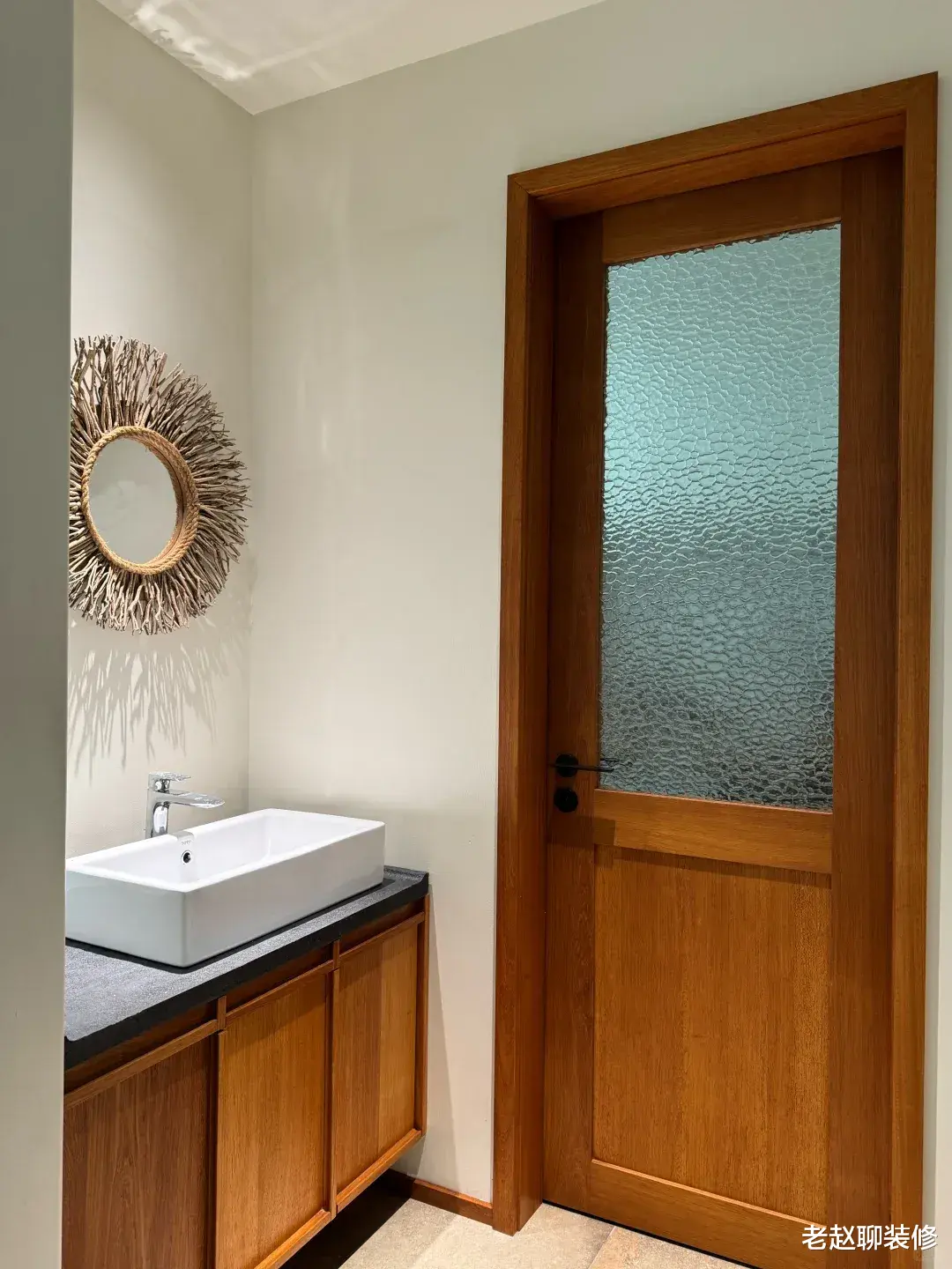 老赵有话说:很多博主就知道说木门不防水,卫生间只能用合金玻璃门,那是因为他们根本就没去过工地,根本就没有施工经验,他们根本就不了解木门的各种工艺,也不了解木门到底该怎么防水防潮。