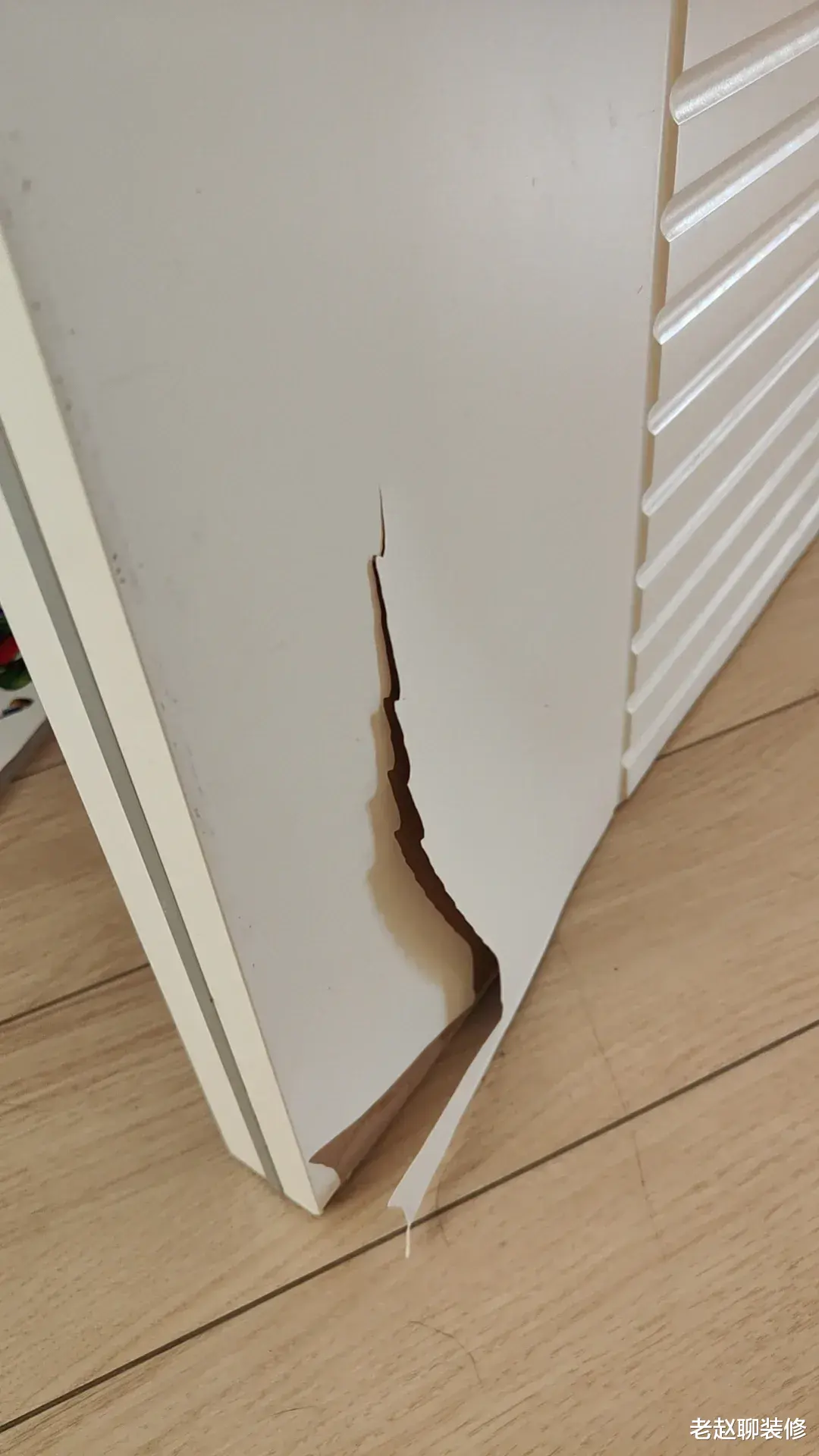 但他们居住以后发现一个问题,那就是明明没有往楼下漏水,但自己家卫生间门口两边的墙面却反碱起皮了。