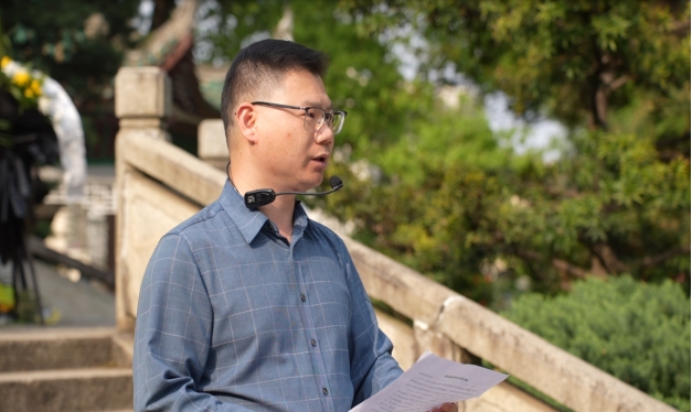 活动中,十名学生代表立足纪念碑前畅谈感悟。王子衿同学轻抚碑文感慨:"以前总觉得英雄遥不可及,今天才明白,他们也曾是和我们一样风华正茂的青年。"王一鸣同学紧握团徽说道:"烈士用生命换来的和平,需要我们用知识去守护、用创新去发展。"活动尾声,同学们自发列队瞻仰纪念碑,将手中的菊花敬献碑前,淡黄色的菊花在暮色中熠熠生辉。
