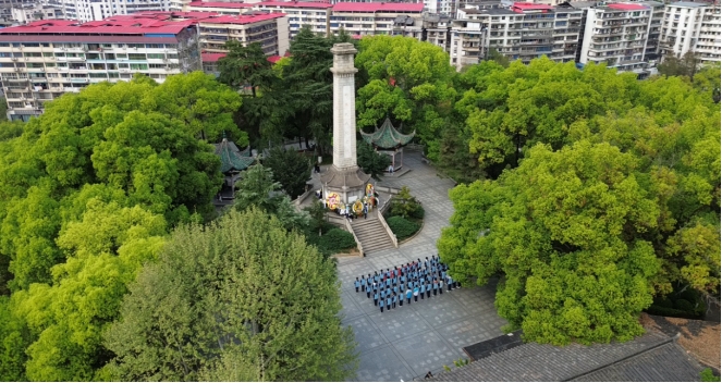 "铭记是最好的致敬,传承是最好的纪念。"校团委书记周晓民在讲话中动情回顾衡阳保卫战的壮烈历史,勉励学子以先烈精神为炬,"将'小我'融入'大我',用奋斗书写新时代青春答卷"。班主任李建华结合班级成长故事,号召同学们"在平凡中铸就非凡,让英雄精神成为成长路上的灯塔"。学生代表、354班刘芝岑同学带领全班庄严宣誓:"以青春之名,承先烈之志;以奋斗之姿,护盛世中华!"铮铮誓言响彻云霄,与高高耸立的抗战英雄纪念碑交相辉映。