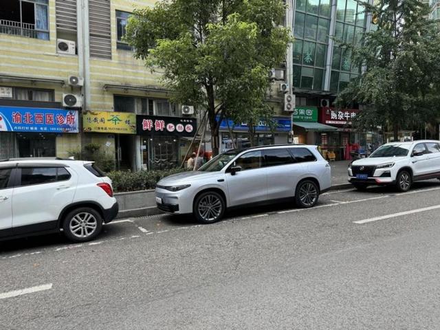 最后在停车的时候,我发现它的自动泊车的激活挺灵敏的,当我把车开到一个侧向车位的前方的时候,挂入R挡,屏幕上就出现了自动泊车界面以及我本来准备停入的车位,于是,我就使用了自动泊车功能,表现还不错,停车的动作较为流畅,最终停的位置也比较标准。