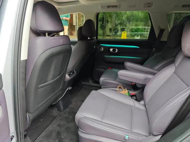但可以肯定的是,车辆座椅的舒适性还是相当不错的,承托性和包裹性都能给高分。而且整个坐姿都是自然的,哪怕是在第三排,也不会有太明显的坐小板凳的感觉。这也和新车用了后翻式布置电驱有一定关系,进一步释放了后排的腿部和脚部空间。