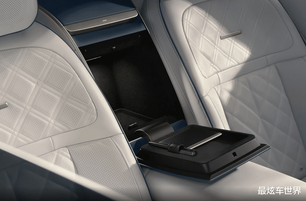 座椅部分,蔚来ET9全系采用Nappa真皮材质包覆,前后排均支持电动调节,而且座椅加热、通风和按摩等舒适性功能也一并给到,全气候都能为用户提供舒适的行车环境。不仅如此,蔚来ET9的第二排独立座椅可带来与前排同等的乘坐体验,中间区域连接处拥有一块液晶屏,可用来控制座椅功能和空调温度等,且14.5英寸后排娱乐屏(入门版支持选装)和折叠小桌板等也一并给到,大大丰富了车辆的功能,工作台、书房等可随心变换。