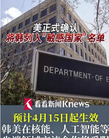 美国能源部正式将韩国列为敏感国家,这又是美国对韩国的一次釜底抽薪,表面上喊着美韩亲如兄弟,暗地里却白刀子进红刀子出,找找都是奔着韩国的要害去的。