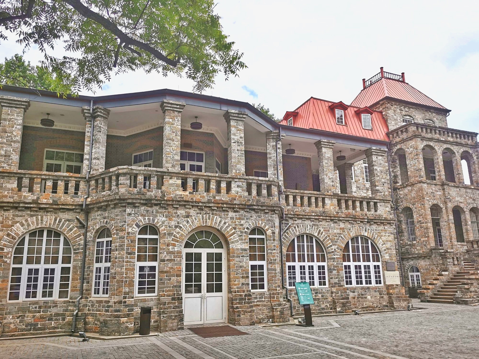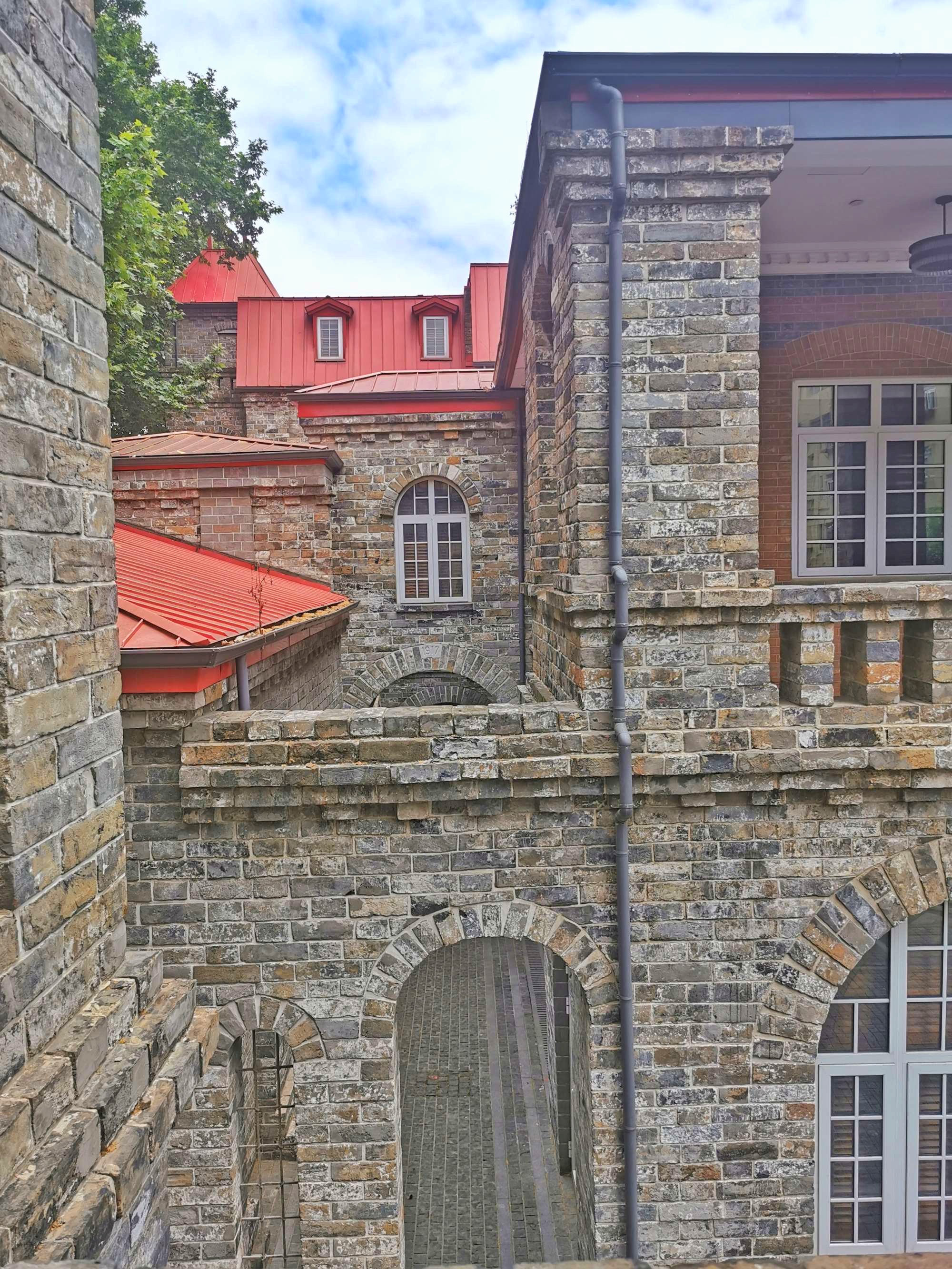 建筑具有法式古堡风格,外墙呈青灰色,用红色铁皮铺就屋顶,整幢建筑的建造大约使用了十万块明代古城墙砖。古城砖与洋建筑的结合,散发着中西合璧的别样风情。