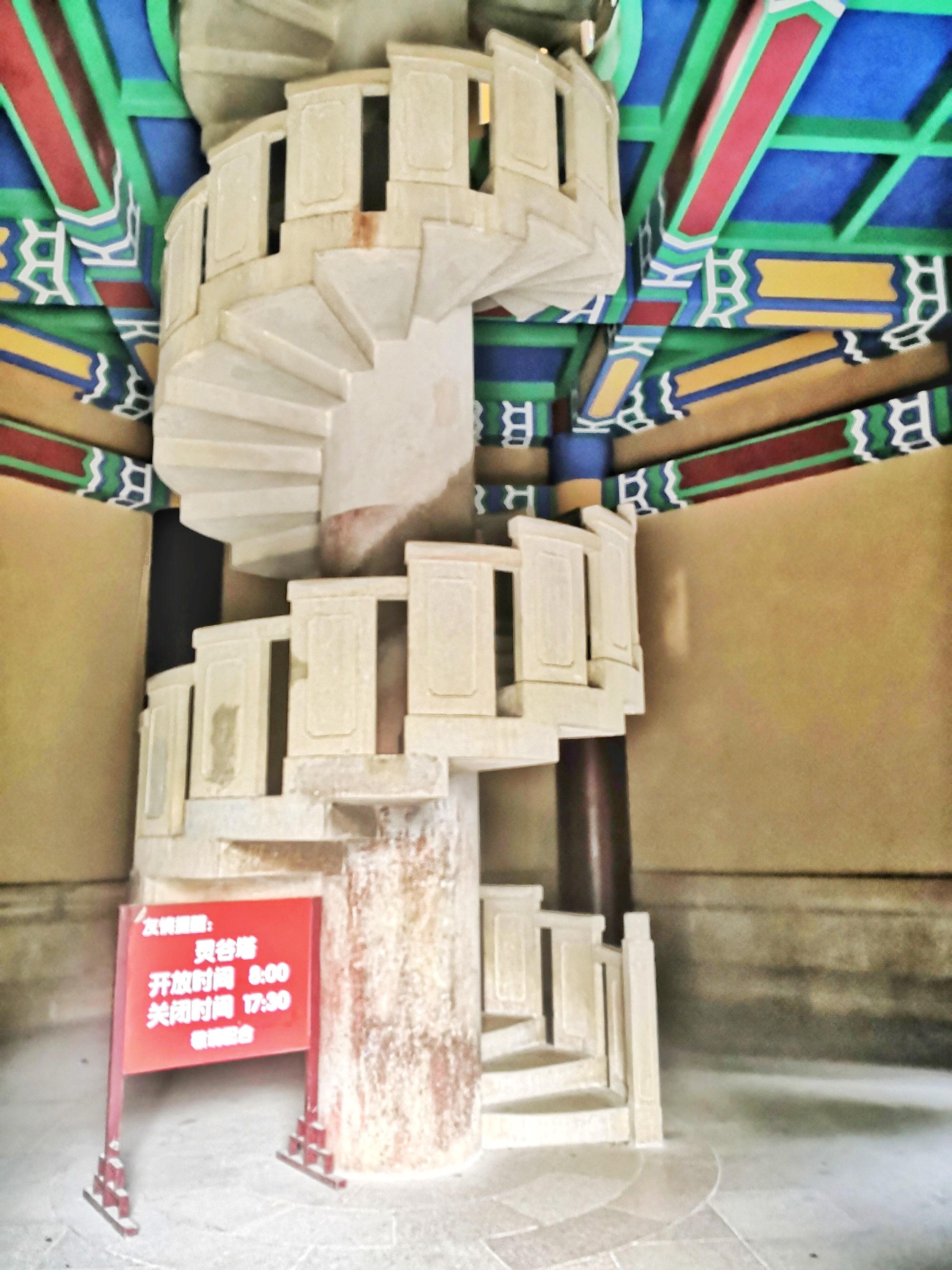 塔内正中有钢筋水泥螺旋型扶梯,直上九层,共252级。