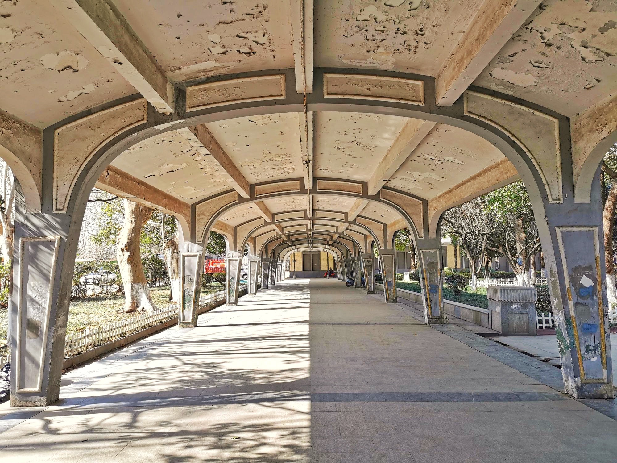 长廊内两侧,各有36根廊柱、36个花盆、30张石凳。廊柱下是传统须弥座样式的八角形花盆,石凳简单装饰云纹图案。