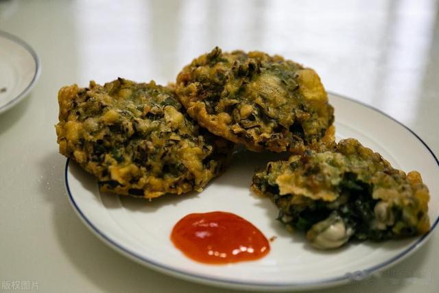 海蛎包是用海蛎、葱、米浆等制作而成的。炸熟之后的海蛎包,呈金黄色,表皮酥脆,里面的海蛎鲜美好吃。