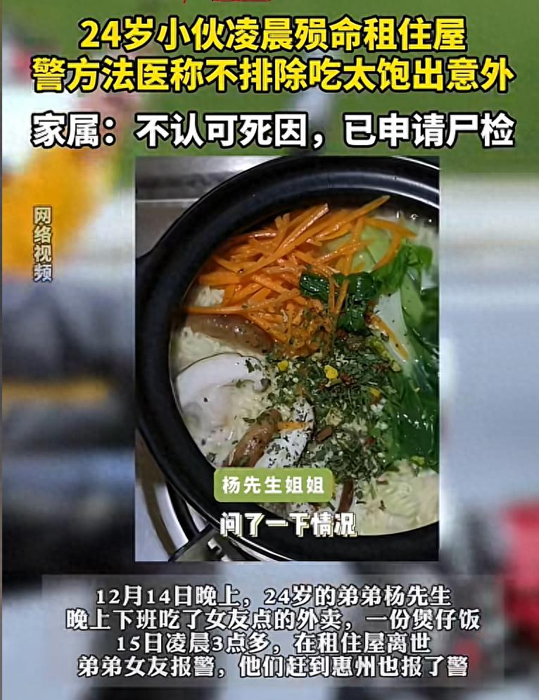 2024年末有一个24岁的青年小杨,晚上吃了女朋友点的一个煲仔饭外卖就睡觉了,凌晨3点多跟他一起住的女朋友醒来的时候发现小杨在抽搐,就赶紧打了120,结果120赶来到他们的出租屋,却没有抢救过来,医生说可能是脑出血。