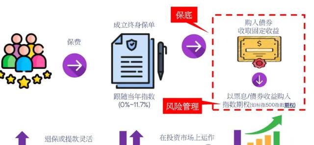 投保人购置保单之后,保险公司会先使用保费去购买债券,如此一来能够获取稳定的收益,还能够保障本金的安全。而后,保险公司会利用债券的票息去购买标普 500 的期权。