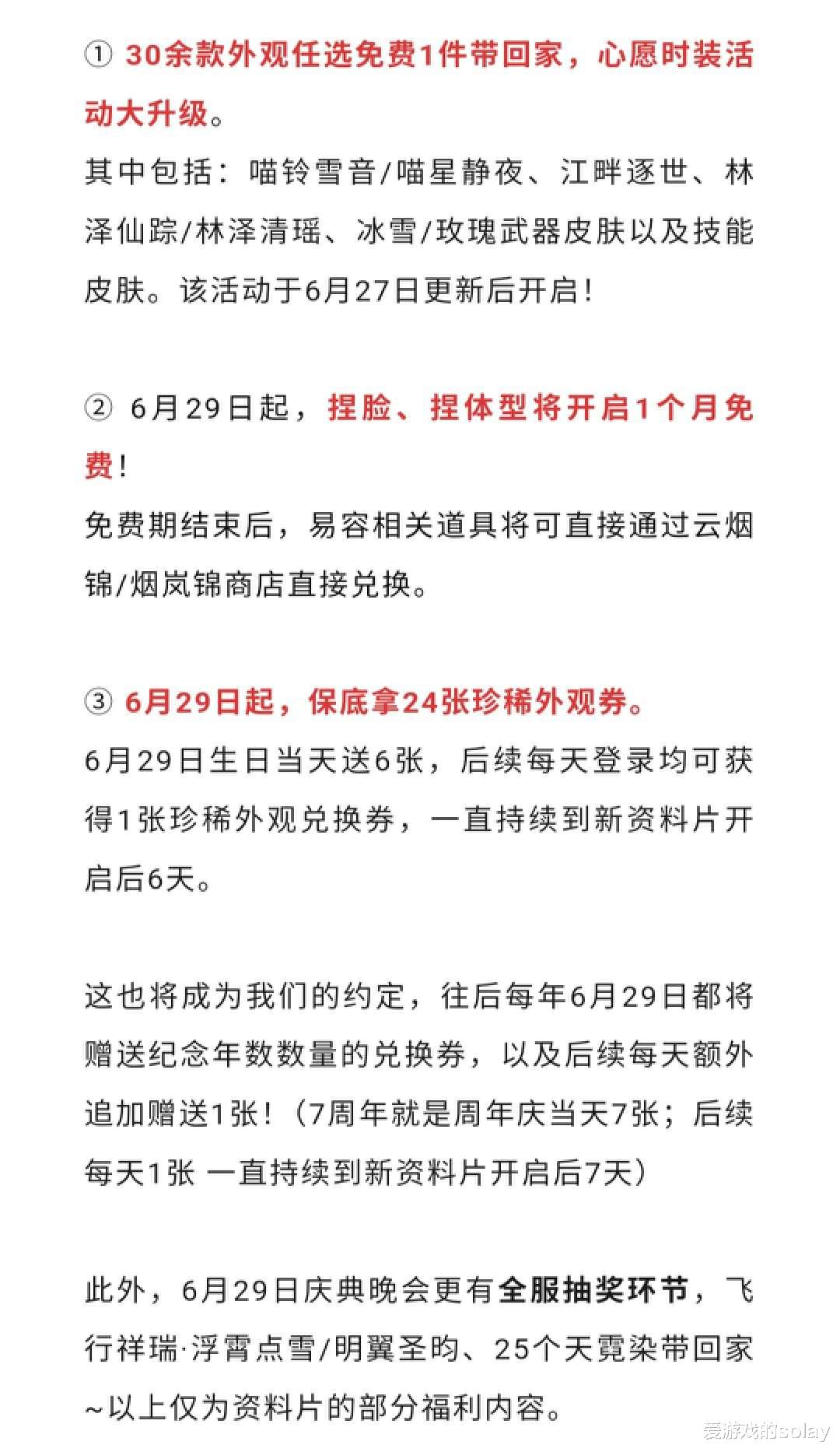 在6月29日起,《逆水寒》还将启动为期一个月的捏脸、捏体型免费活动。并且在免费期结束后,易容相关道具将可直接通过云烟锦/烟岚锦商店直接兑换,不再需要玩家们花一分钱。与此同时,玩家们还能通过每日登录,领取到保底24张珍稀外观券……