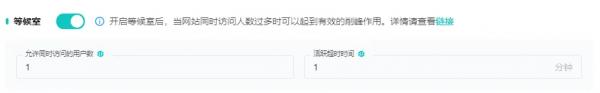 开启等候室后,当网站同时访问人数过多时可以起到有效的削峰作用。