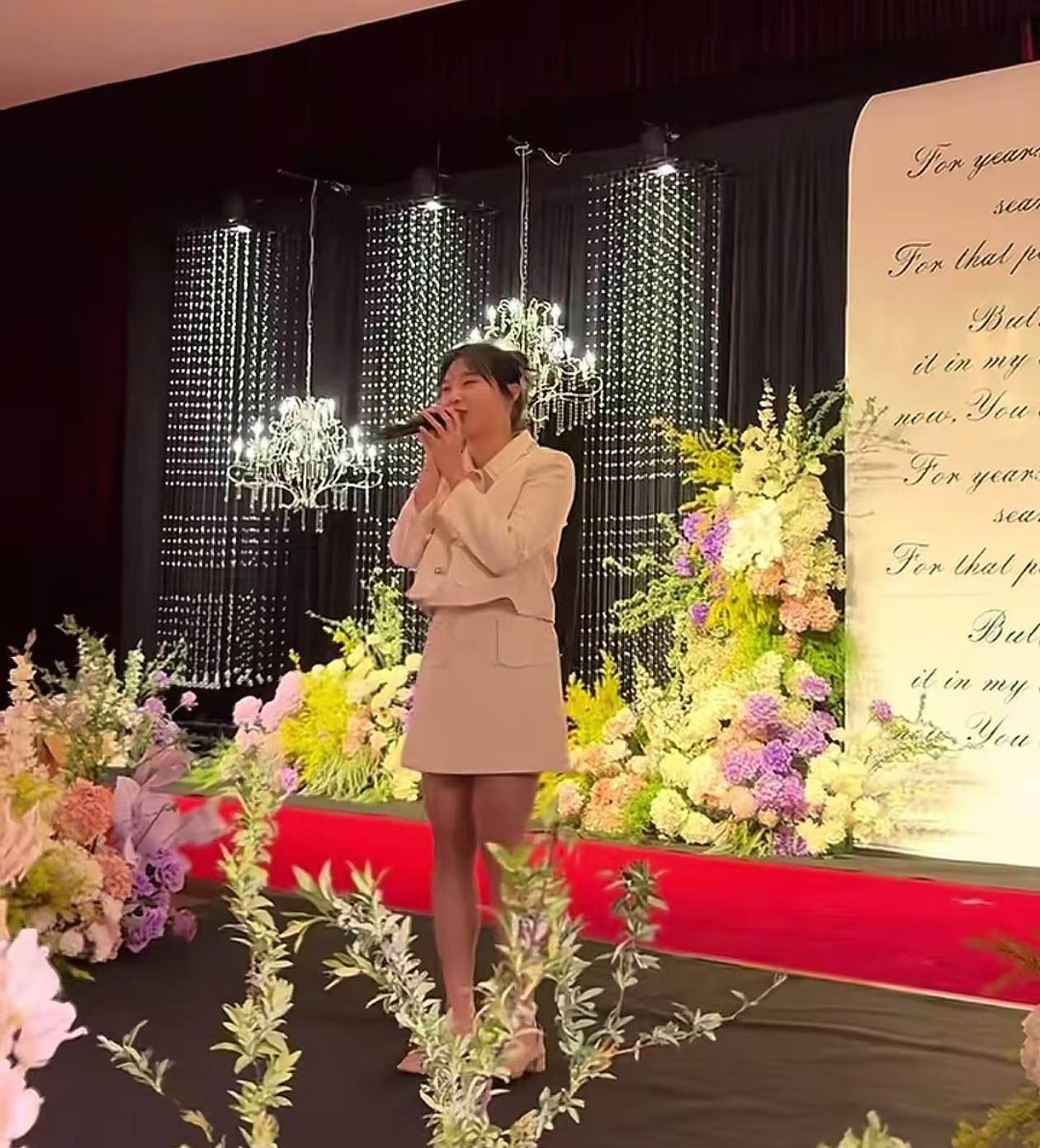在婚礼表演环节,黄老师登台献唱,稳定的台风和动听的歌声,让人不禁感叹她深厚的音乐功底。
