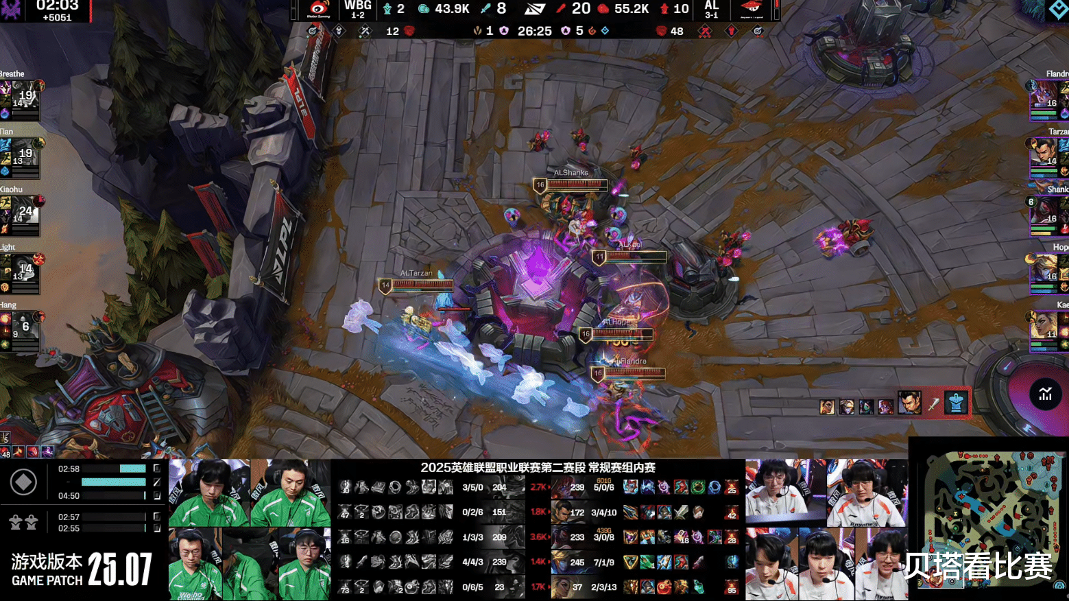 LPL第二赛段登峰组WBG和AL的BO3,双方大战2局之后,AL以2-0的战绩击败WBG,拿下4连胜,也送给WBG第3败。