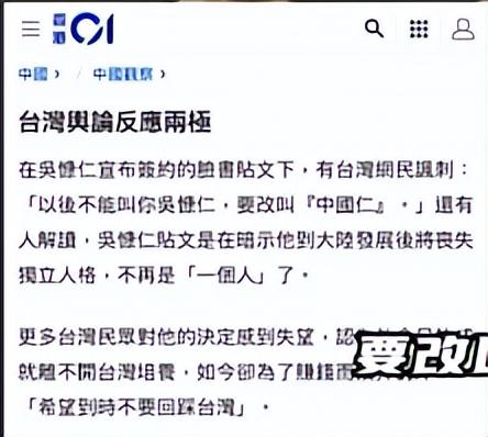 连支持“台独”的台湾网民也更不喜欢他,甚至还讽刺吴慷仁以后是不是要叫“中国仁”了。