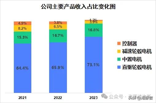 而公司也是国内少数掌握力矩传感器核心技术的企业之一,其产品更加简洁、美观、小巧、拆装便捷、具备更高输出力矩,防尘、防水、防雾性能更佳。因此公司的中置电机也是毛利率最高的产品,2023年毛利率超56%,远高于减速轮毂电机32%的毛利率。