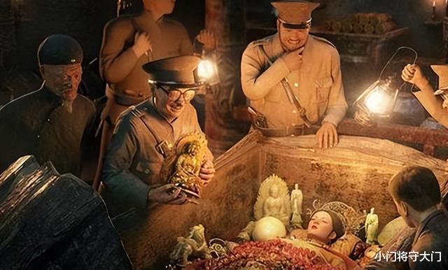 慈禧太后身着龙袍,安详躺于棺内。孙殿英谨慎伸手,自慈禧口中取出夜明珠。