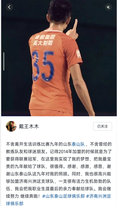 在4月6号,效力于山东队9个赛季的戴琳,在自己的社交媒体上发文告别。戴琳自己表示下一站将是加盟济南兴洲队。