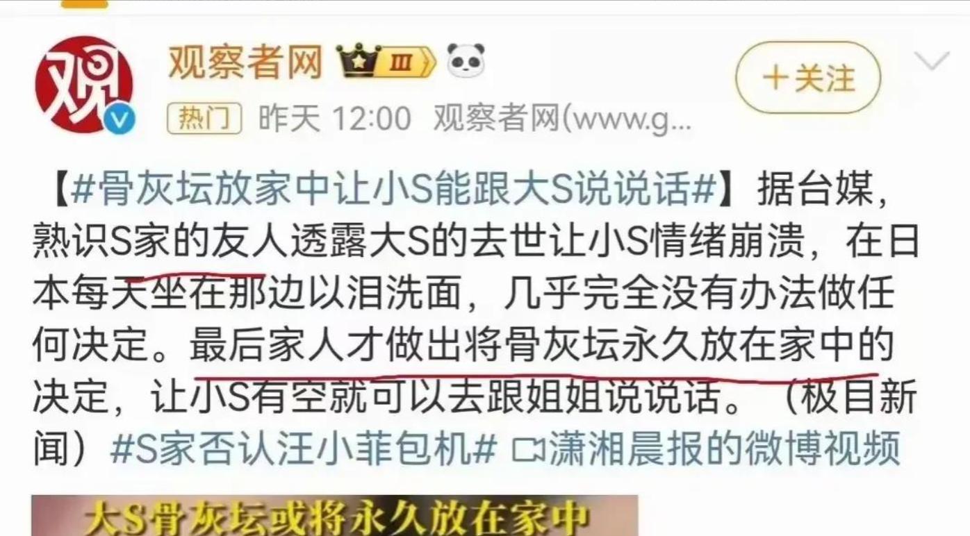 大家都知道,大S的突然离世,让她的家人和朋友都非常悲痛。