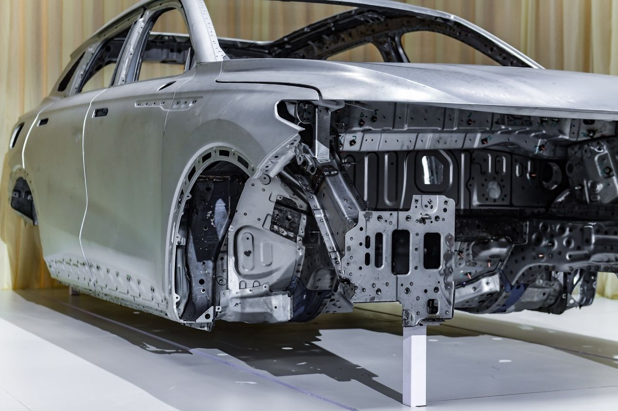 “白车身”,是指在汽车的设计或制造阶段,所有的钣金部件已焊接在一起,车内的发动机、悬架等核心结构也已配齐,但尚未将移动部件(如车门、引擎盖、挡泥板等)和配件及装饰(如玻璃、座椅、室内装潢、电子设备等)安装到位的状态。这一状态犹如医学中被“X”光检视过的人体,骨架清晰可见,不被皮囊或衣物所遮掩。可以说,以“白车身”状态现身的星途M38T,不仅显示出其已经进入了可量产的阶段,其自身在被动安全设计上的“硬核实力”也一览无余。