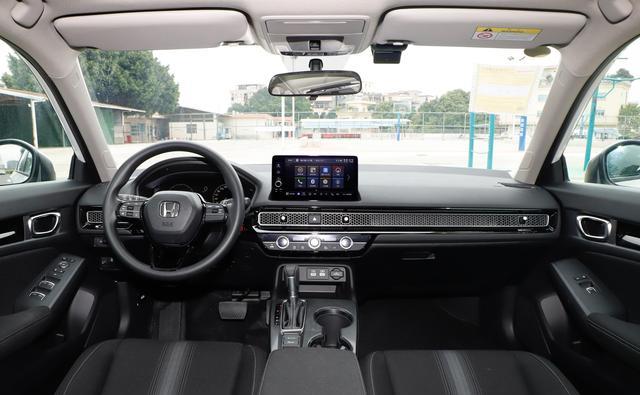 进入车内,新思域的内饰设计同样走的是简约路线,但细节处理得相当精致。中控台的布局层次分明,该触控的地方触控,该实体按键的地方实体按键,操作起来很顺手。贯穿式金属网格空调出风口是我个人特别喜欢的设计,看起来低调不花哨,却让整个内饰多了一种高级感。方向盘是三幅式多功能的,握感很好,大小适中,长时间驾驶也不会觉得累。9英寸悬浮式中控屏幕加上全液晶仪表盘,为整个内饰增添了不少科技氛围,显示效果清晰,反应速度也很快,不会有卡顿或者延迟的情况。至于座椅材质和包裹性,我觉得表现中规中矩,不能说豪华,但绝对对得起这个价位。而且不同配置提供了纯黑、运动黑和黑红三种配色方案,给了消费者更多选择。