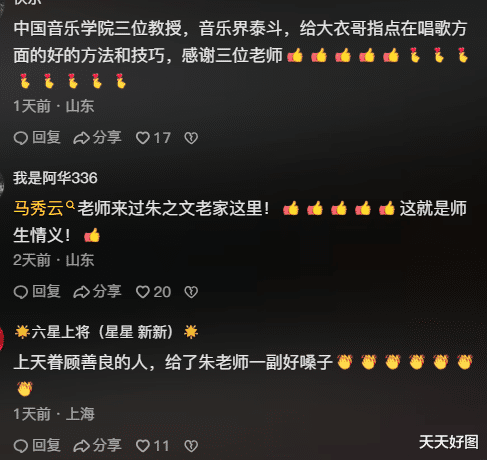 朱之文也没想到唱了一辈子成名曲,在大师眼里还是有很多不足之处,从这点看,专业做音乐的就是与普通人不同,相信通过这次“学习”,大衣哥在音乐这条路上前途不可估量。因为最近他正在练习于文华老师发给了他一首新歌《美丽中国》。这次他特地来到北京,想请三位老师给予指导下,毕竟不能靠一两首成名曲,吃饭一辈子。