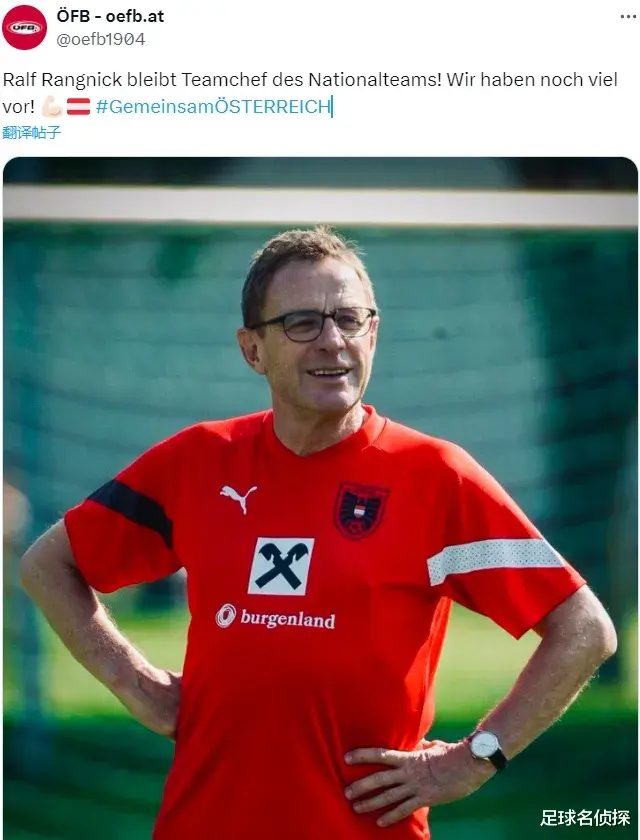 官方:奥地利足协宣布朗尼克将在欧洲杯之后继续担任他们的国家队主帅。
