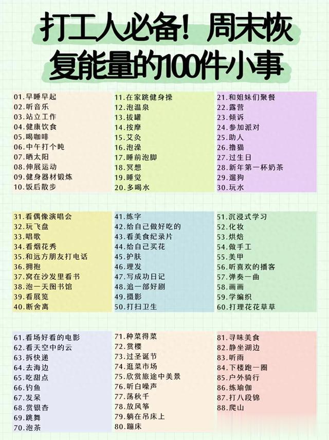 打工人必备,周末恢复能量的100件小事!