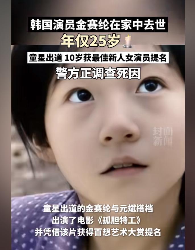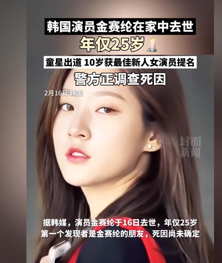2025年2月16日,韩国娱乐圈传来令人震惊的消息,年仅25岁的演员金赛纶在家中去世,曾经的童星如今却以这样的方式结束了自己的生命,令人感到无比惋惜。她的离世不仅让人痛心,也引发了对年轻艺人心理健康的深思。