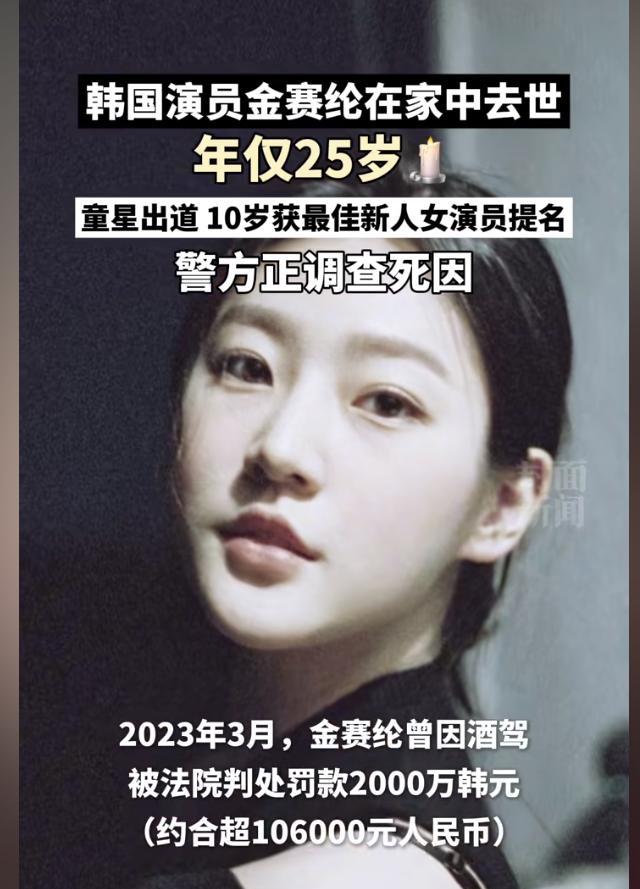 2023年3月,金赛纶因酒后驾驶被检方起诉,最终被法院判处罚款2000万韩元。她本以为在经历了这些挫折后,能够重新振作,然而命运却给了她致命一击。2025年2月16日,她被发现死在家中,警方表示没有他杀嫌疑,但死因仍在调查中。媒体猜测她的死因可能与长期酗酒引发的器官衰竭有关,或者是抑郁导致的极端选择。