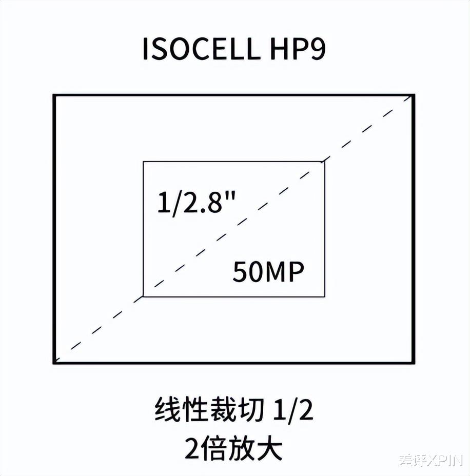 B 站上一位叫 @ 老孙不慌的 up 主就给大家分析过了:HP9 自己原本是一个 1 /1.4 英寸, 2 亿像素的传感器,如果用我们在取景框内把画面放大两倍的话,按照线性裁切的计算方法,裁出来的 “ 小传感器 ” 也有 500w 像素呢,妥妥够用。