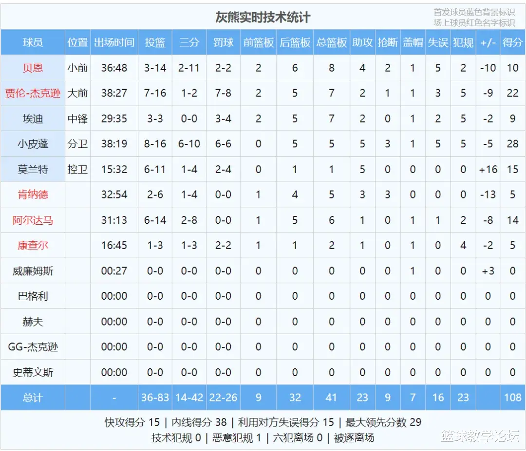 NBA历史上,0比3落后的球队,没有一支能够翻盘。目前还不知道莫兰特伤势有多严重,需要等待进一步检查结果。先看看本场的数据: