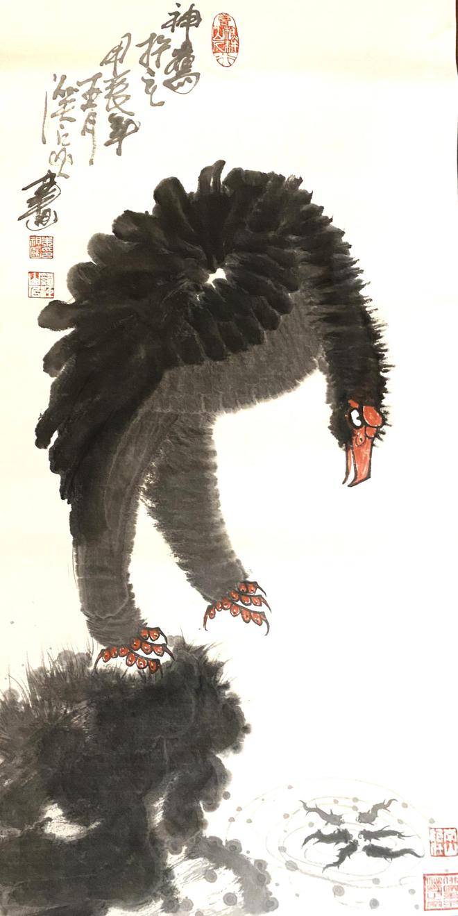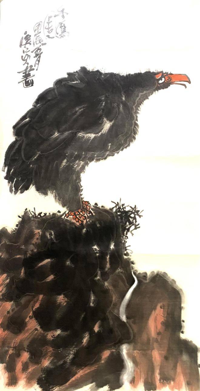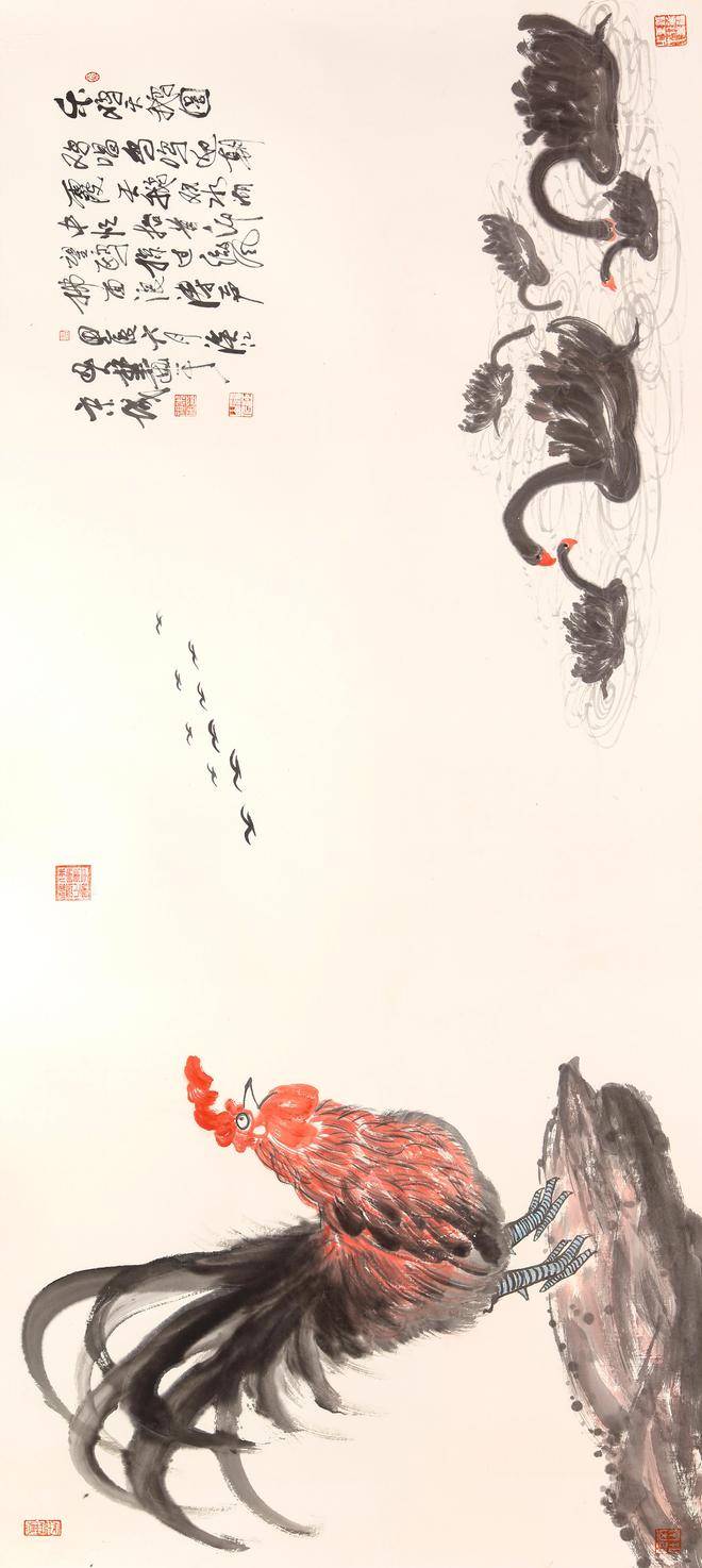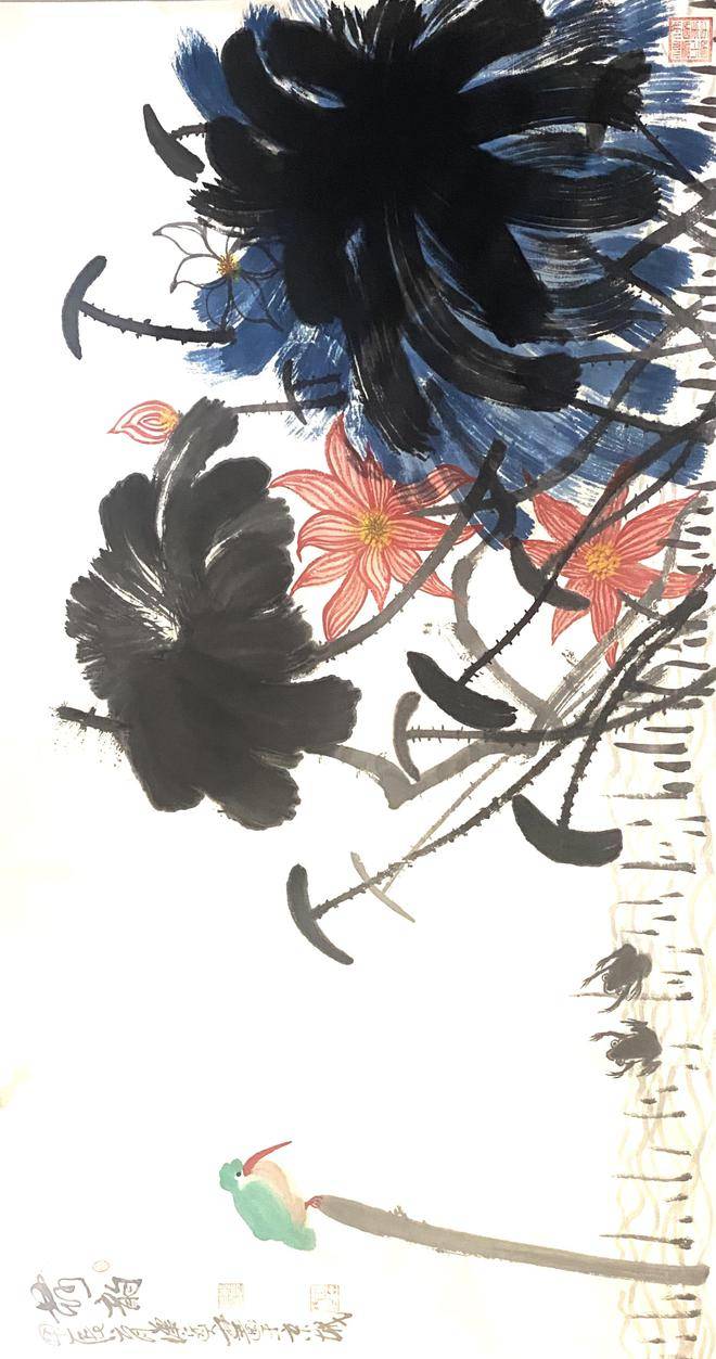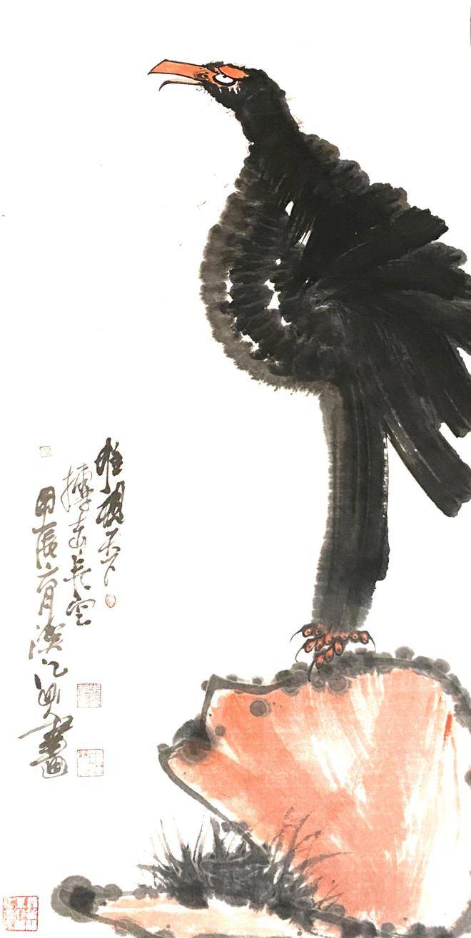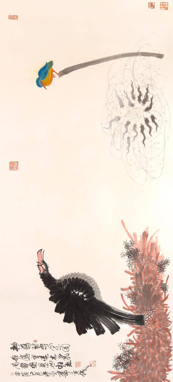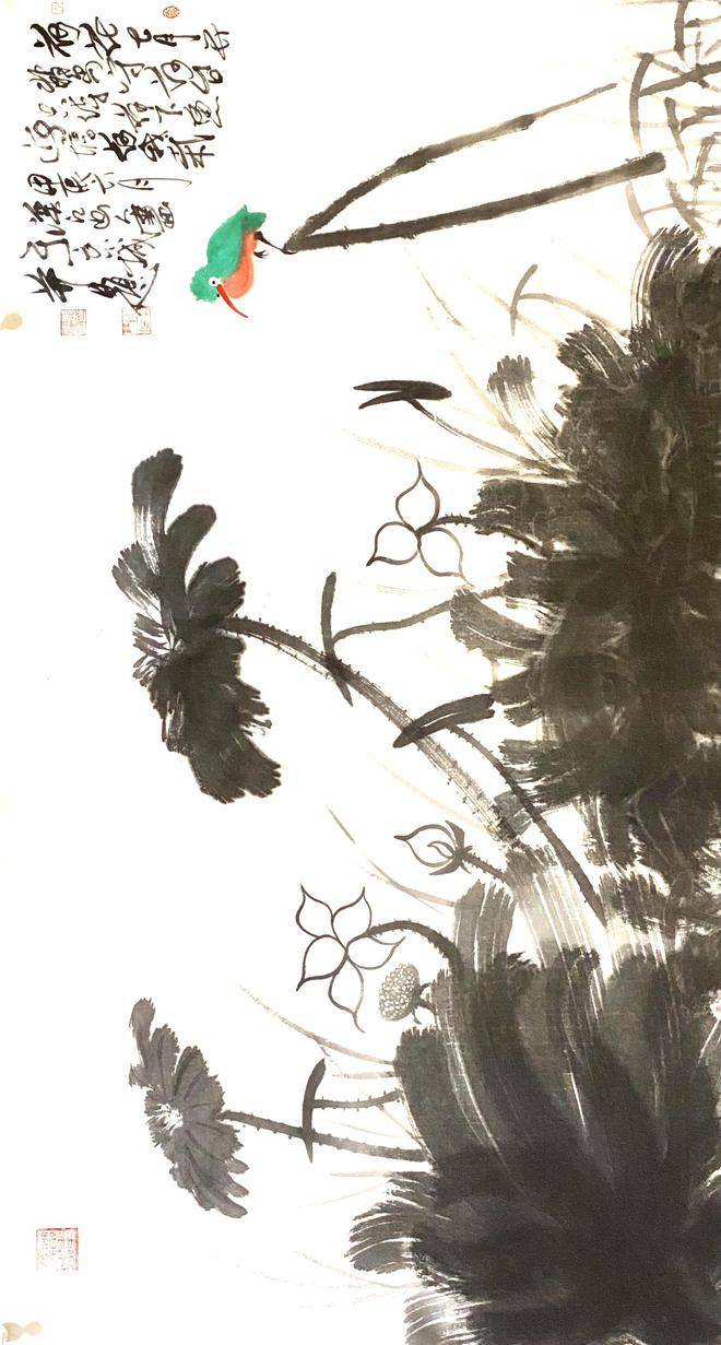 联系到他近几年的各种题材各种尺幅的花鸟画作品,我们不难发现朱祖国先生以其大写意观为艺术创作的指南,以笔墨为媒介、以扬发大写意精神为旨归,表现意象注重得意传神,营构意境力求简约文气,含蓄蕴藉,别有余味。其创作在必然性与偶然性的结合中,感受得以抒发;在自由加制约的迹象中,情感得以表露;在笔墨的张驰有度中,气韵缱绻而来。这就使自己的写意画既成为自我情感倾诉上的一种内在的冲动和表现形式,又成为其写意艺术审美重心自觉转向主体性的标志。